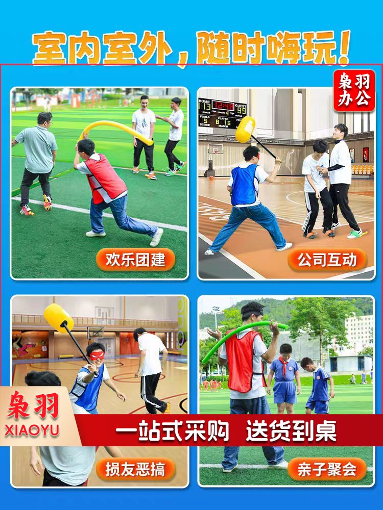 蒙眼尖叫鸡互打棒趣味运动会团建拓展活动道具(海绵棒5人款 尖叫鸡*8+海绵棒)