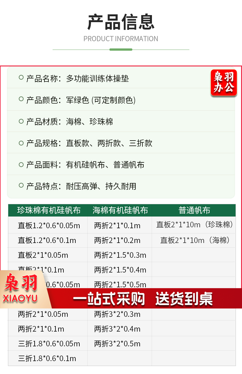 体操垫空翻垫仰卧起坐垫直板2*1*0.05m珍珠棉带粘贴可拼接地垫