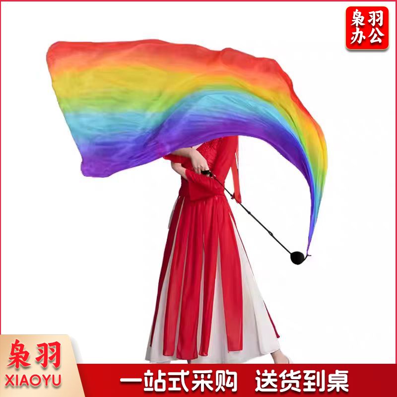 运动会开幕式纱球舞甩纱巾彩绸彩带仿真丝(七彩长2米含沙球)