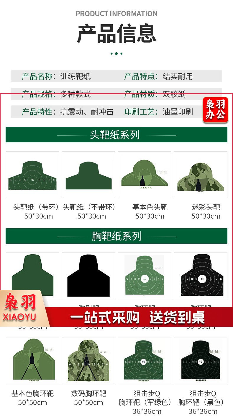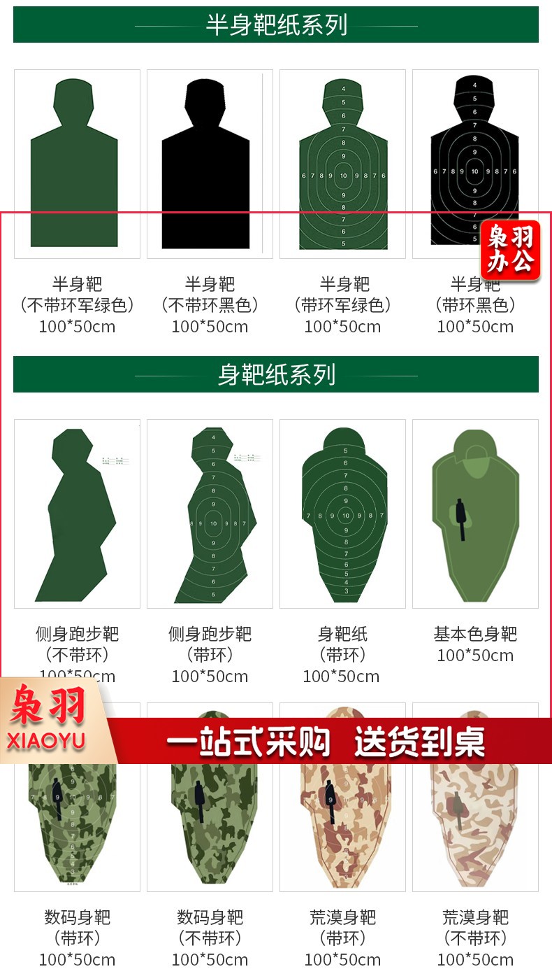 靶纸 胸靶靶纸头靶射击训练打靶板靶纸器材 胸环靶(带环)50*50cm 100张
