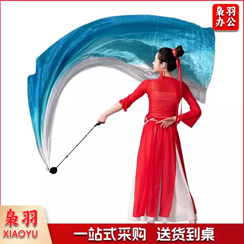 运动会开幕式纱球舞甩纱巾彩绸彩带仿真丝(白湖蓝长2米含沙球)