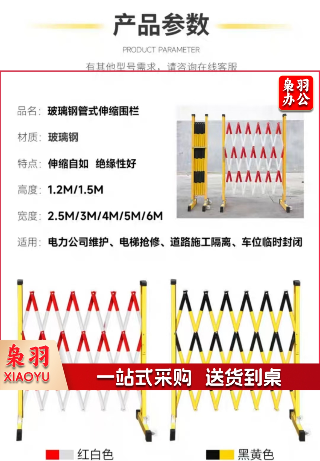 可移动伸缩围栏 黄黑相间玻璃钢管伸缩护栏 高1.2米展开宽2米