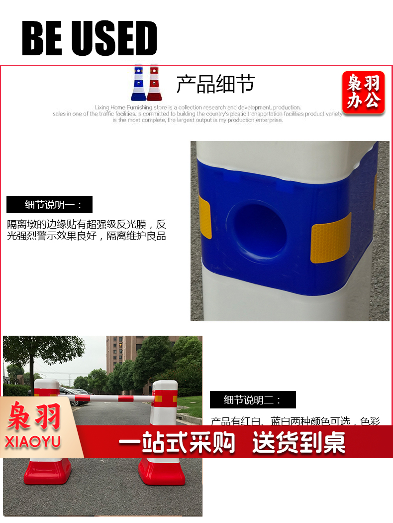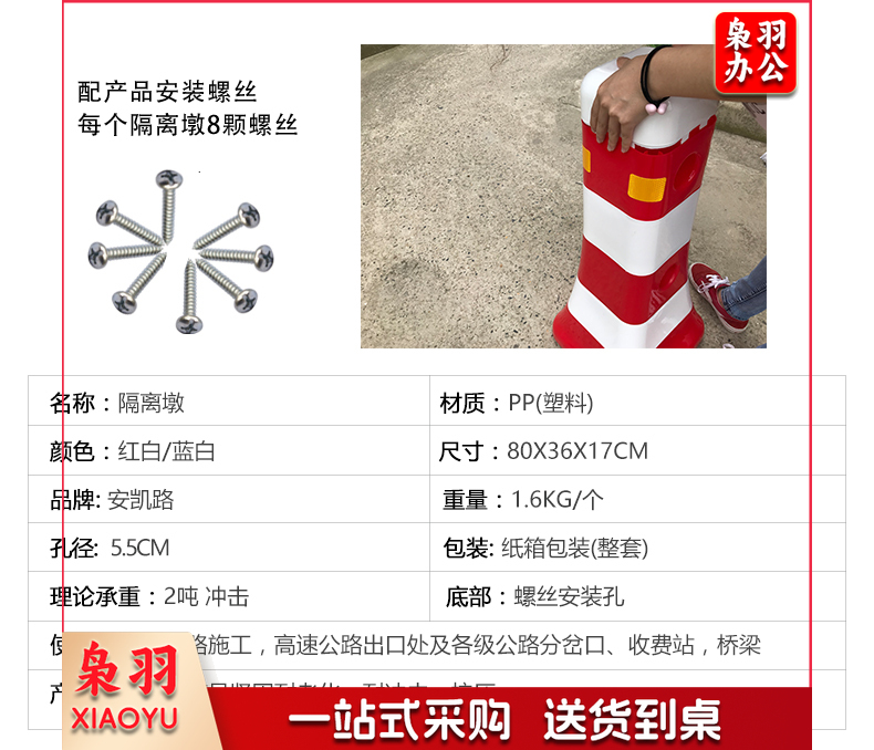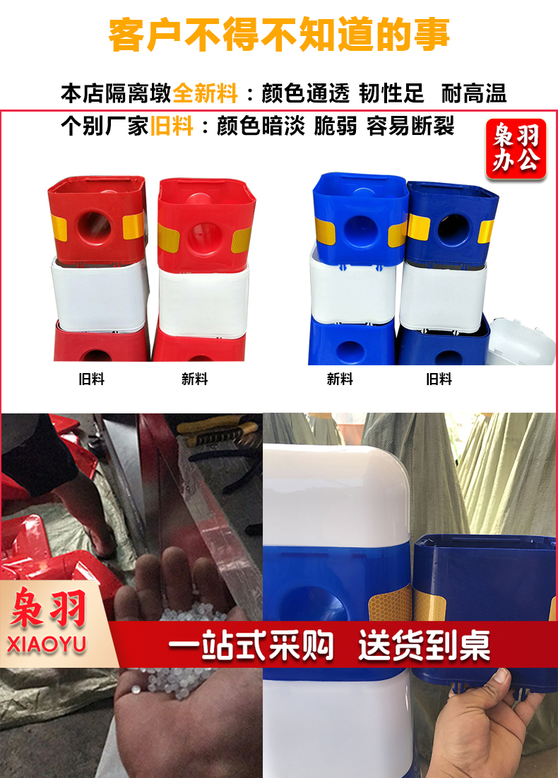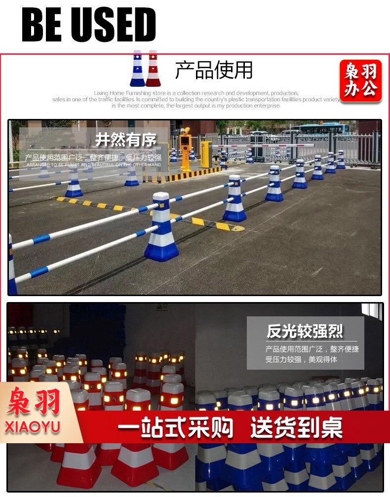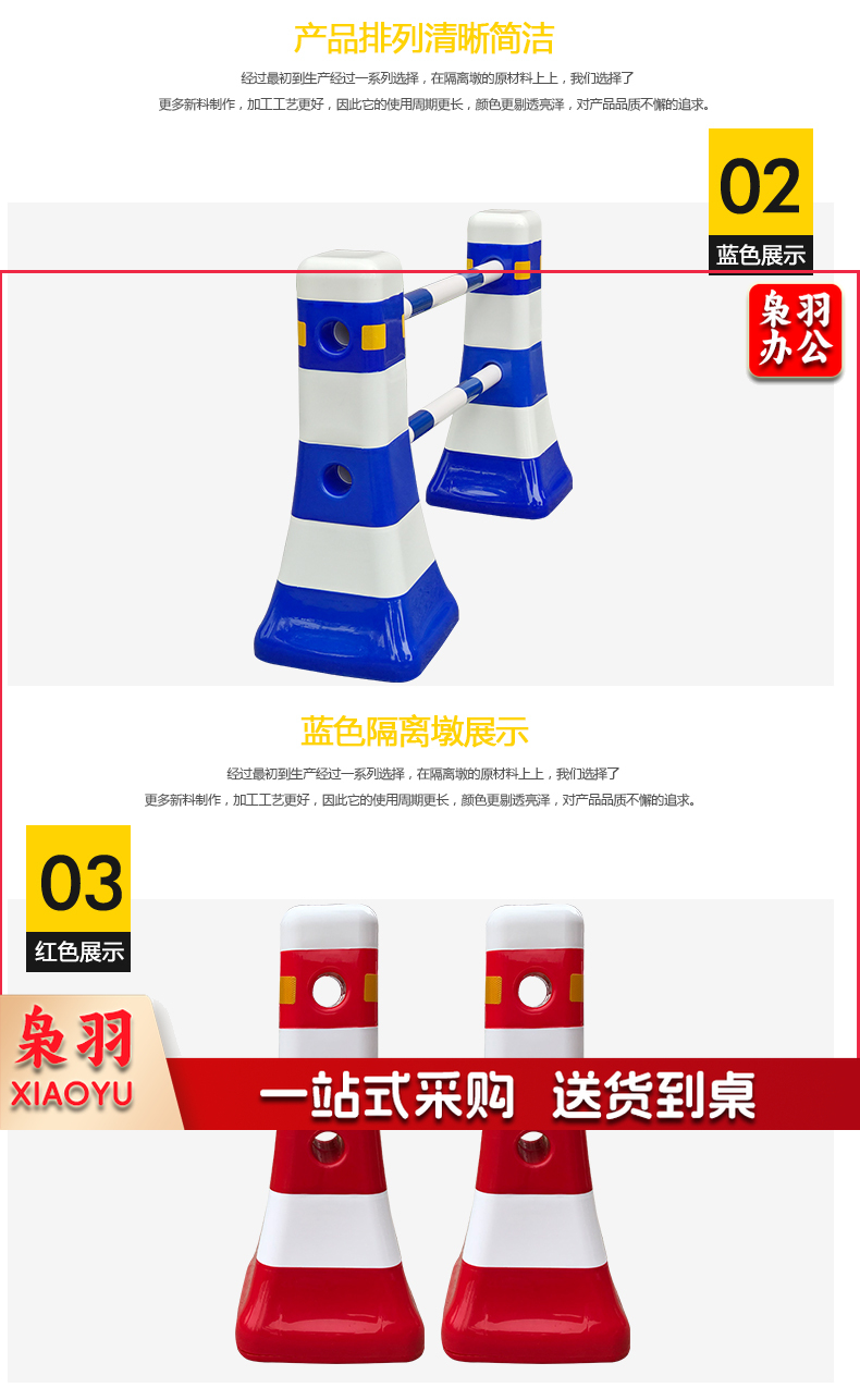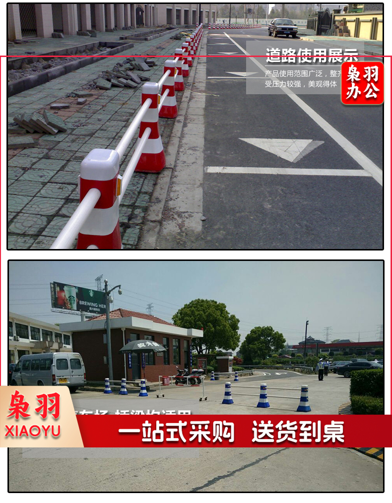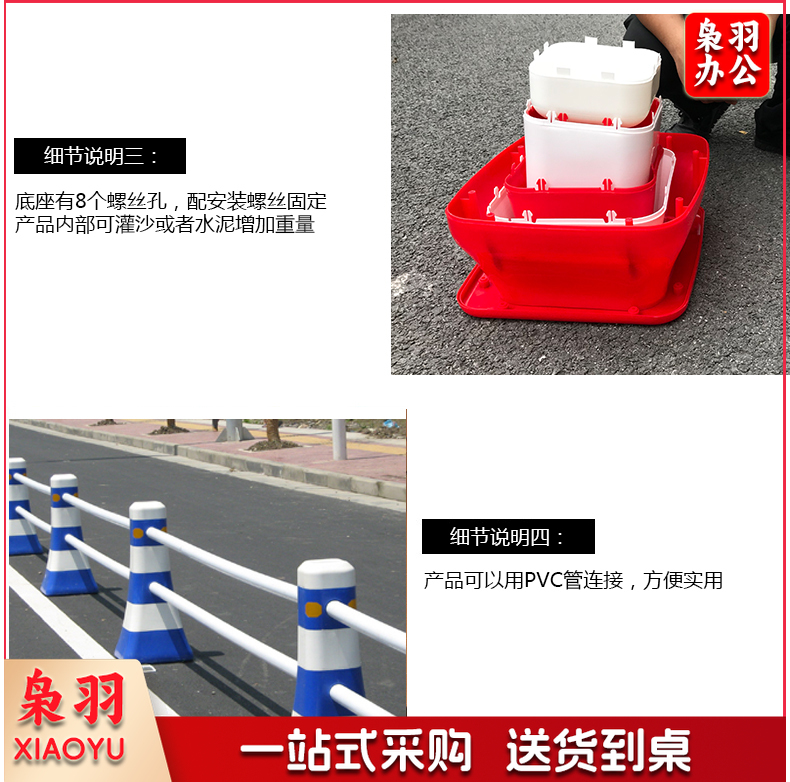 交通设施 分流水马 隔离墩 防撞桶 塑料围栏 道路护栏 一套(2个路墩,2个2米杆架)