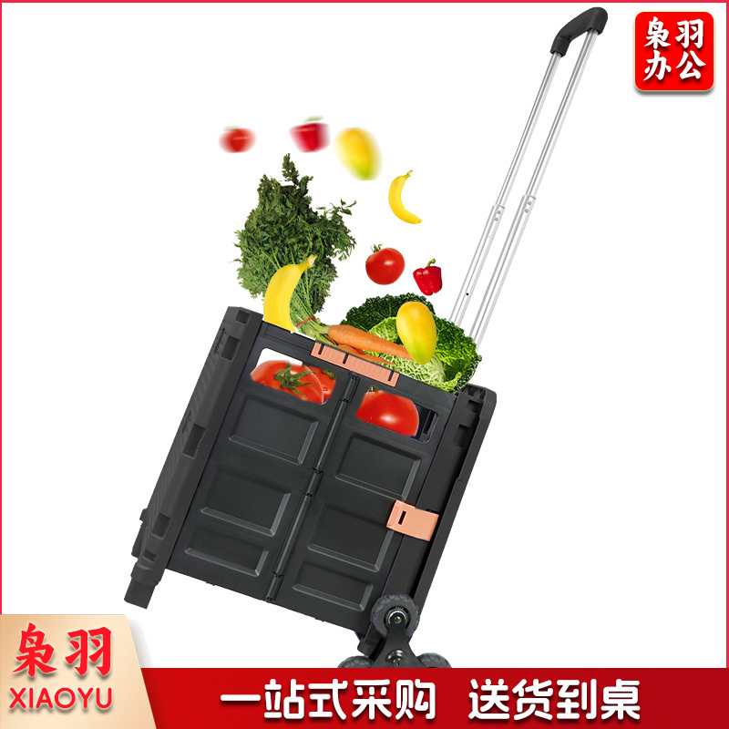 折叠购物车手拉车 超市买菜车手推车折叠小拖车小拉车 铝合金车行李车搬运车家用拖车爬楼款黑BY06-B