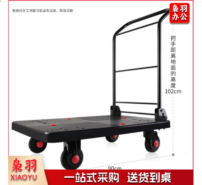 嘉世精选 超轻平板车折叠手推车拖车小推车小拉车拉杆货车塑料搬运车 大号精致轻音款90x60cm 承重700斤