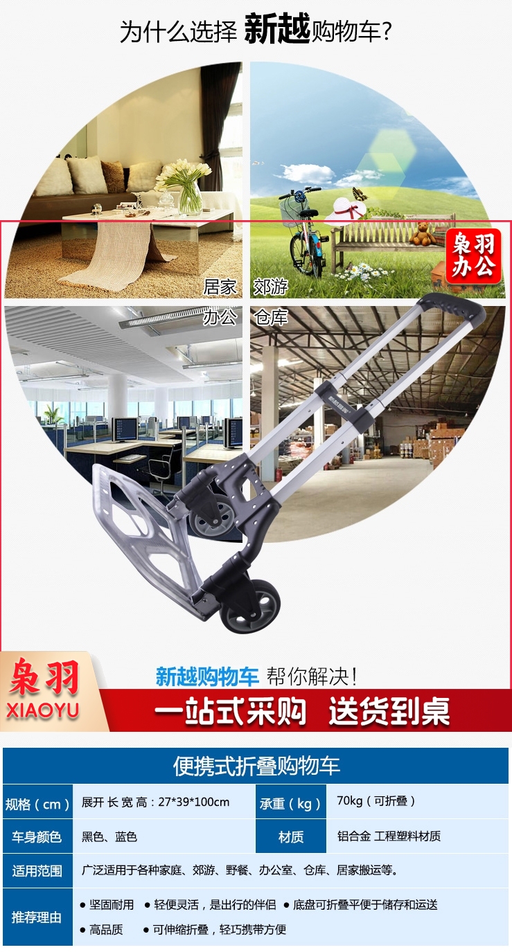 小推车小拖车行李车折叠拉杆车货购物手拉车手推车货车承重约140斤黑F51005