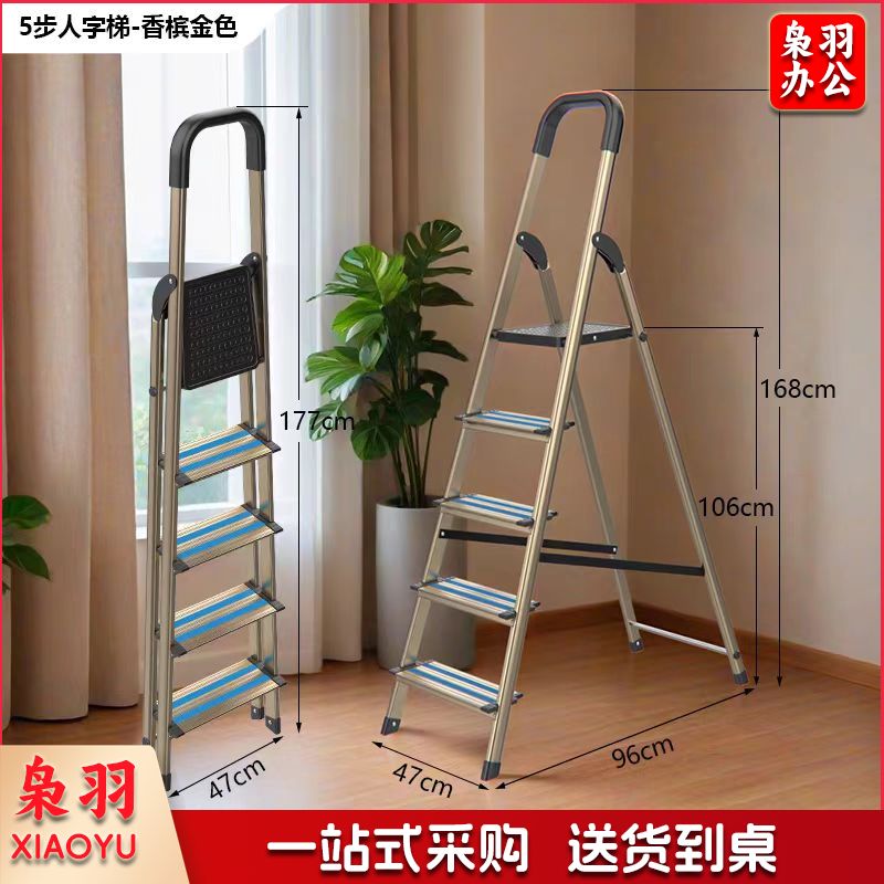 梯子折叠梯人字铝合金梯子五步梯带横梁加高扶手