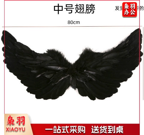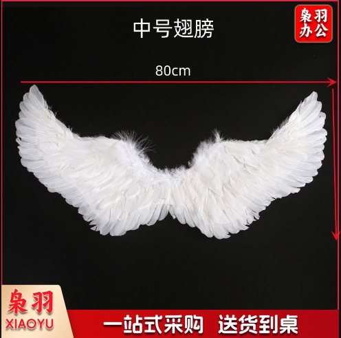 羽毛翅膀天使道具舞台表演儿童模仿走秀演出圣诞节日装饰三件套(中号)