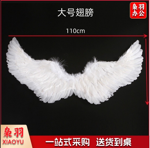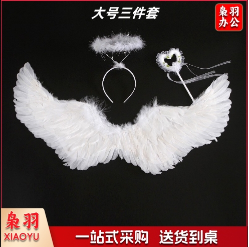 羽毛翅膀天使道具舞台表演儿童模仿走秀演出圣诞节日装饰三件套(大号)