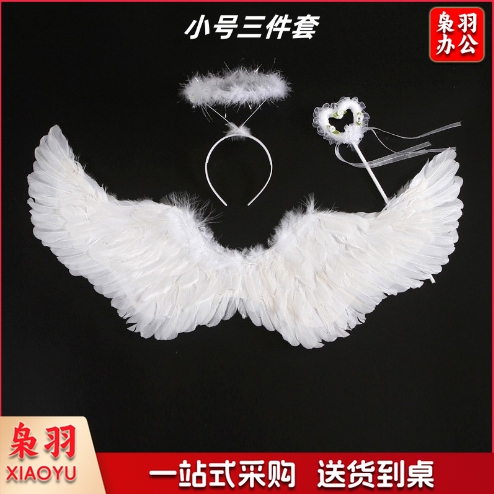 羽毛翅膀天使道具舞台表演儿童模仿走秀演出圣诞节日装饰三件套(小号)