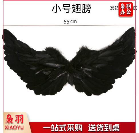 羽毛翅膀天使道具舞台表演儿童模仿走秀演出圣诞节日装饰三件套(小号)