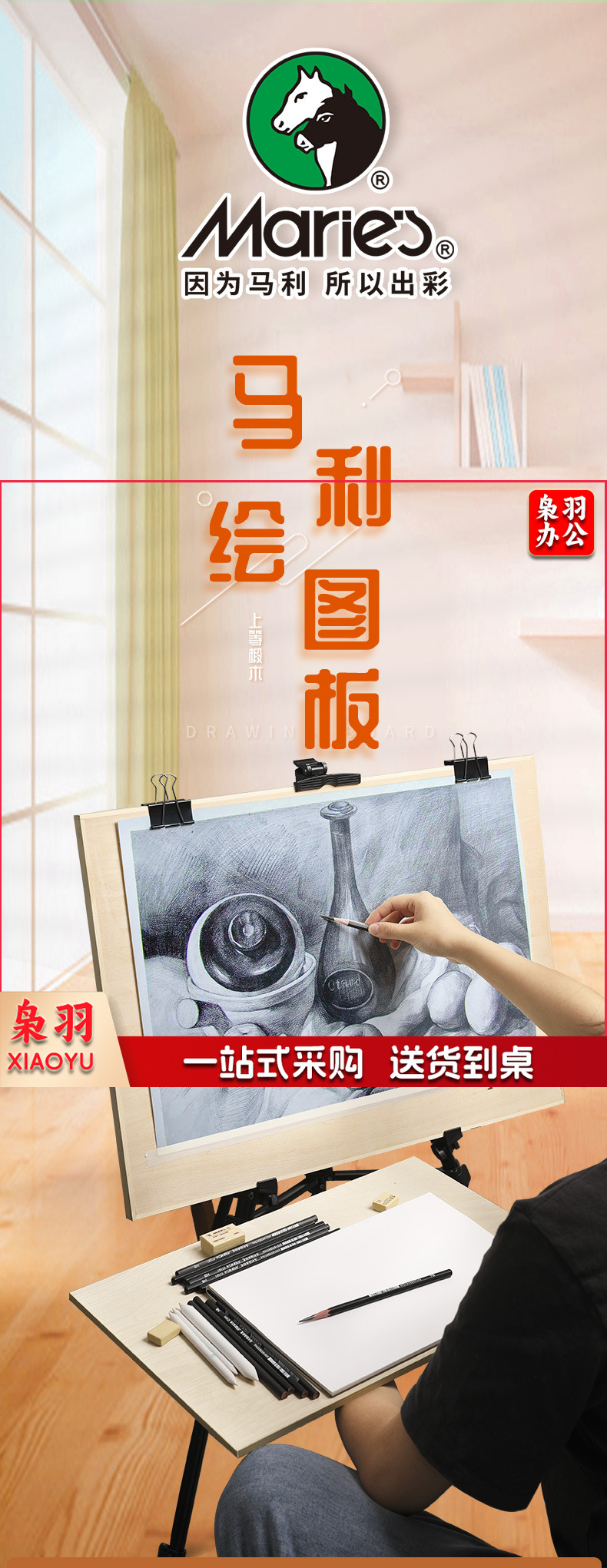 马利素描画板木制画架板 绘图板美术写生画板8开便携轻木头画板
