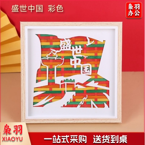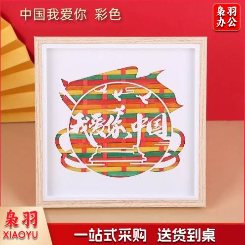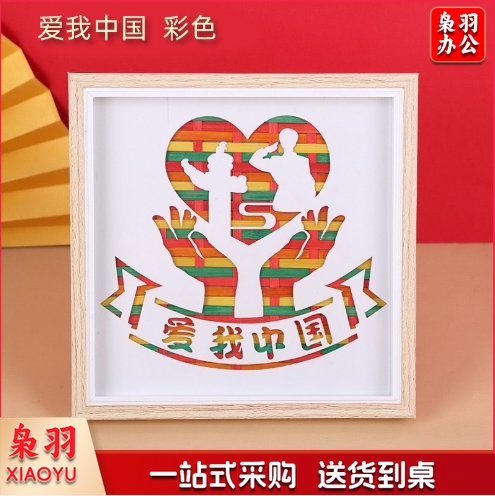 非遗竹编画手工diy材料包国潮竹编相框摆台我爱中国暖场团建亲子(下单备注款式,联系客服)