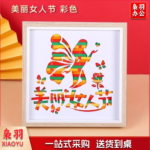 非遗竹编画手工diy材料包国潮竹编相框摆台女神节暖场团建亲子(下单备注款式,联系客服)
