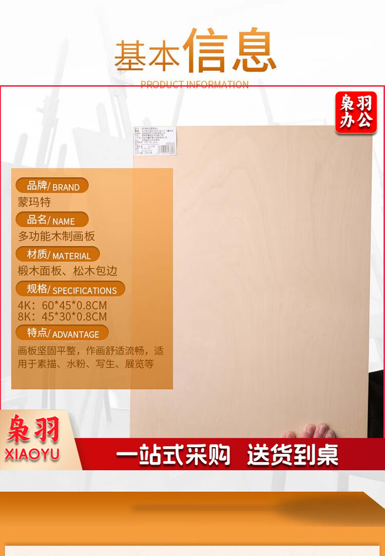 蒙玛特(Mont Marte)椴木4k素描画板45*60cm 美术写生速写板实木画画板成人儿童画架板木质实心绘图板4K空心手提加固画板(45*60*2cm)