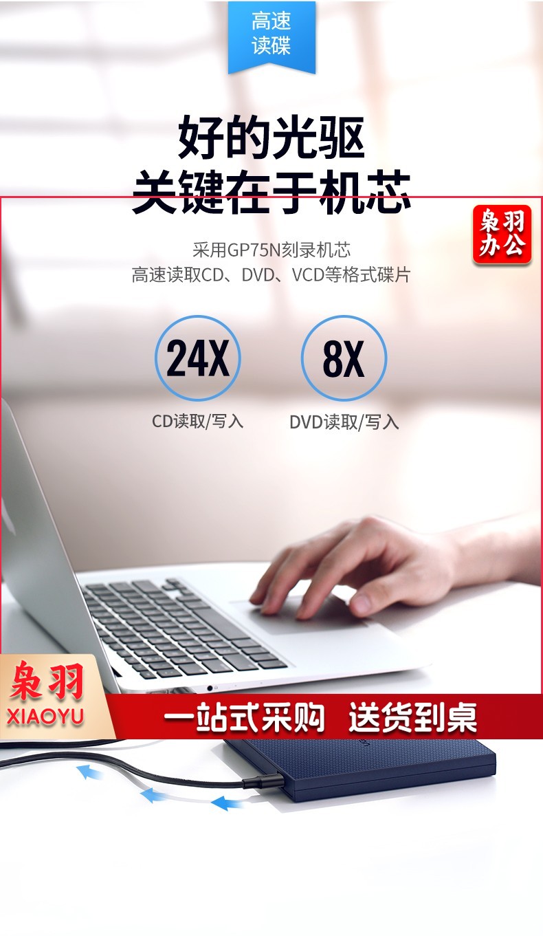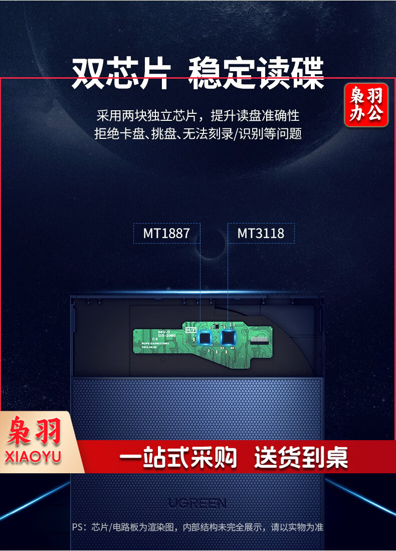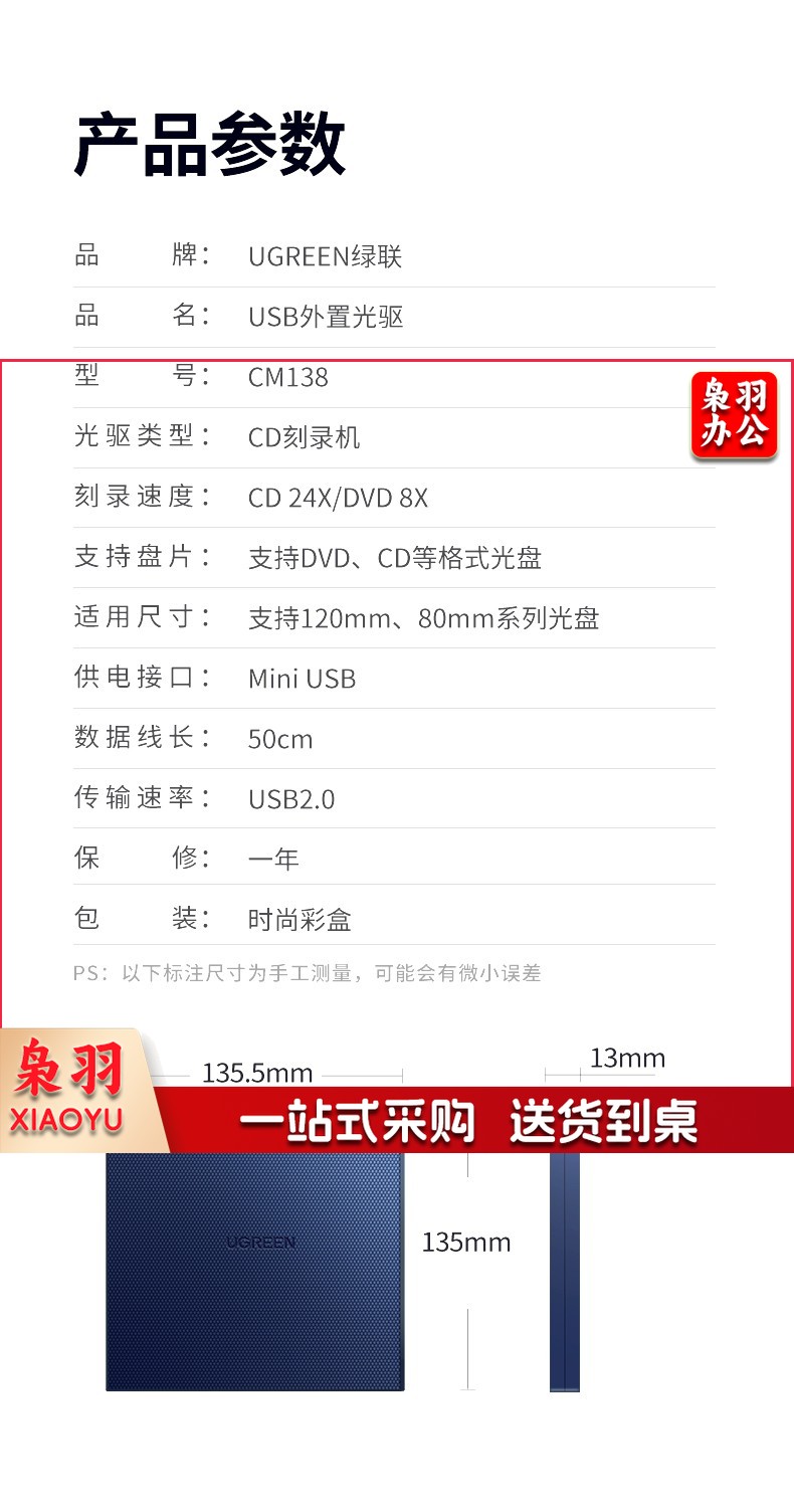 绿联(UGREEN)40576 外置光驱盘USB-C接台式Type-C笔记本电脑刻录机DVD/CD/VCD通用8/CD24倍速 USB款 免装驱动