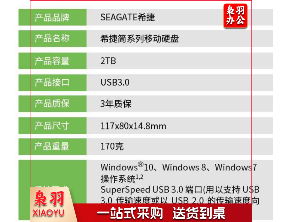 希捷STJL2000400移动硬盘 2TB USB3.0 简 2.5英寸
