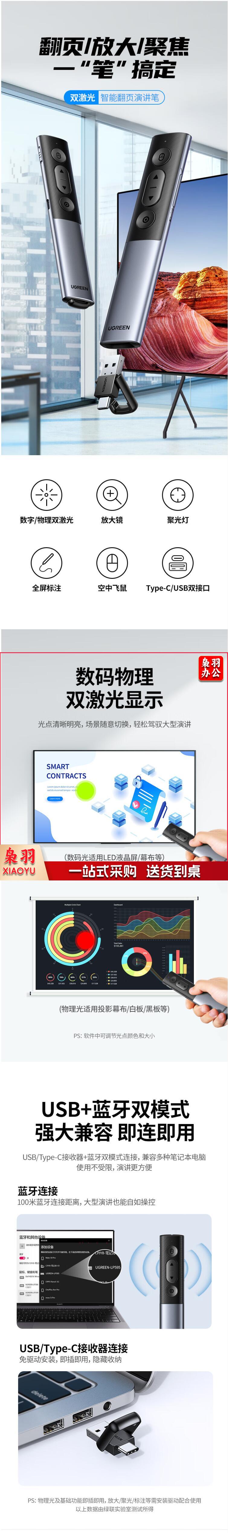 绿联15066 激光笔 PPT翻页笔 数字物理双激光支持蓝牙连接 适用LED液晶屏数码投影笔放大凸显空中飞鼠教师演讲笔