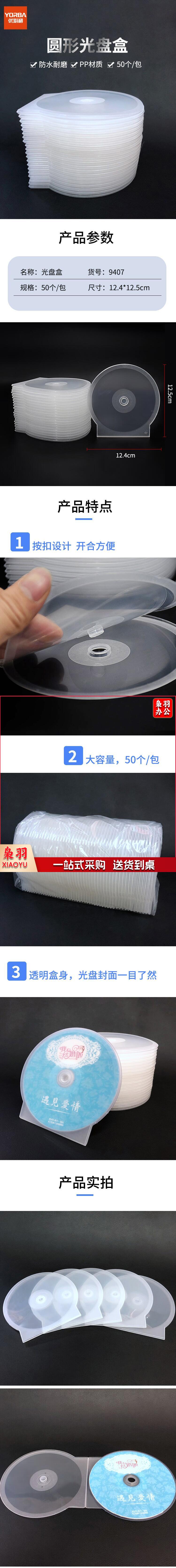 优必利 圆形光盘盒 刻录碟片收纳盒 透明塑料光盘袋 光盘套cd dvd光碟收纳盒子 50个/包(整包销售) 9407