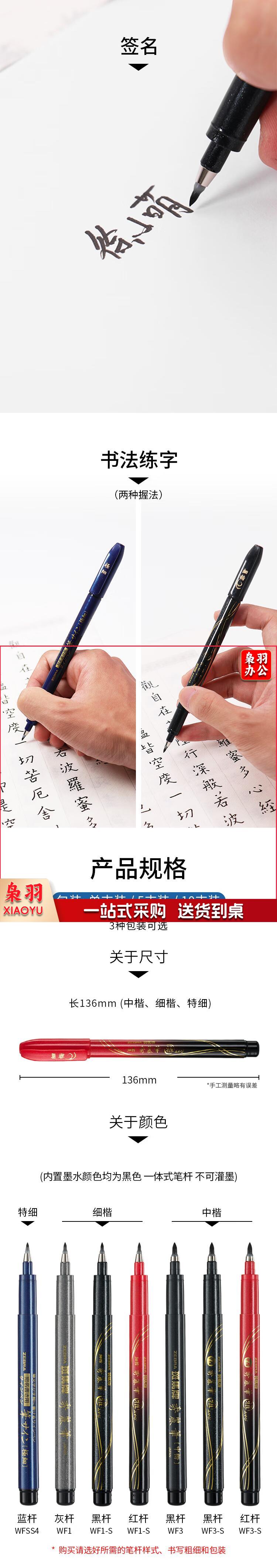 斑马牌(ZEBRA)中楷 秀丽笔 学生毛笔练字笔 书法笔请柬笔 WF3 黑色笔杆 单支装