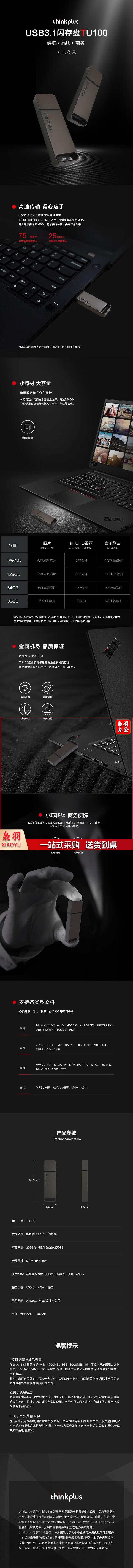 ThinkPlusThinkPad 联想thinkplusUSB3.1高速传输U盘移动闪存优盘金属商务U盘电脑优盘 TU100金属优盘【灰色】 64GB