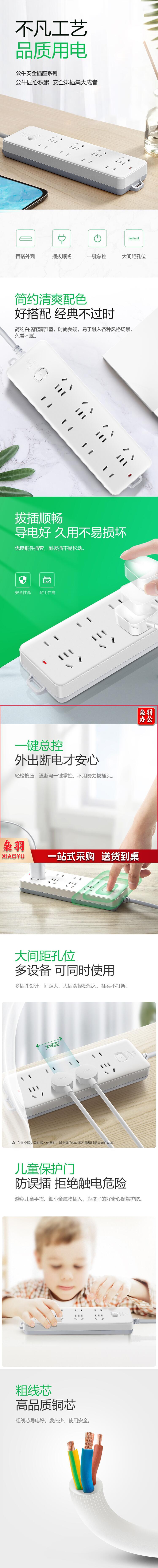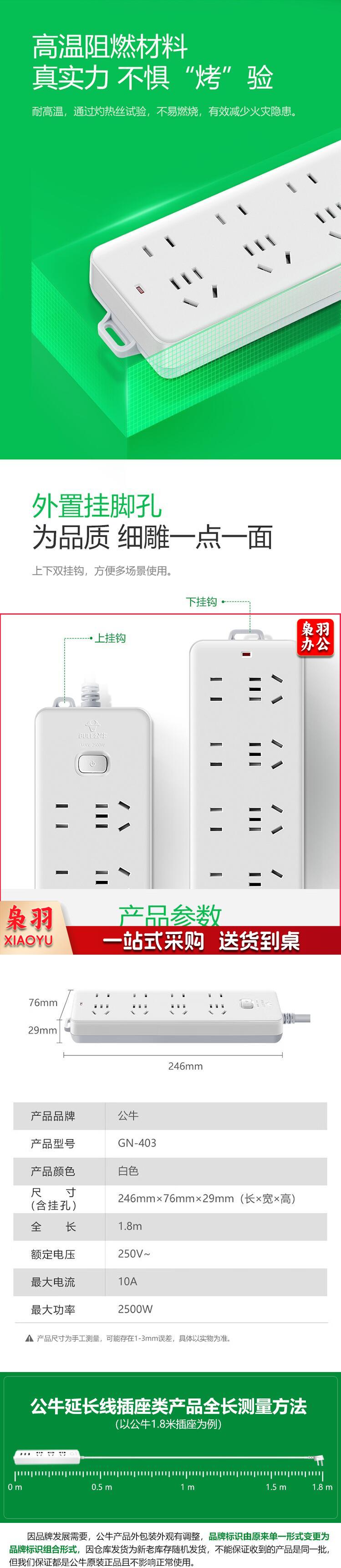 公牛(BULL)新国标插座 插线板/插排/排插/接线板/拖线板 8位总控全长1.8米 GN-403