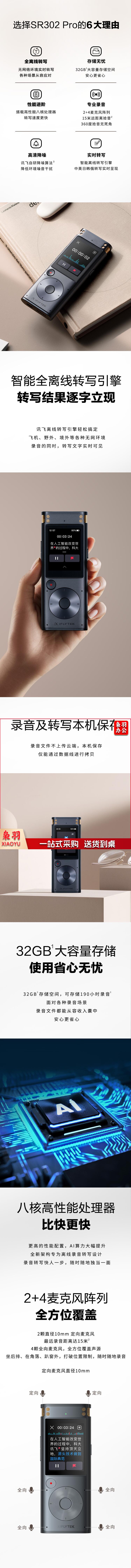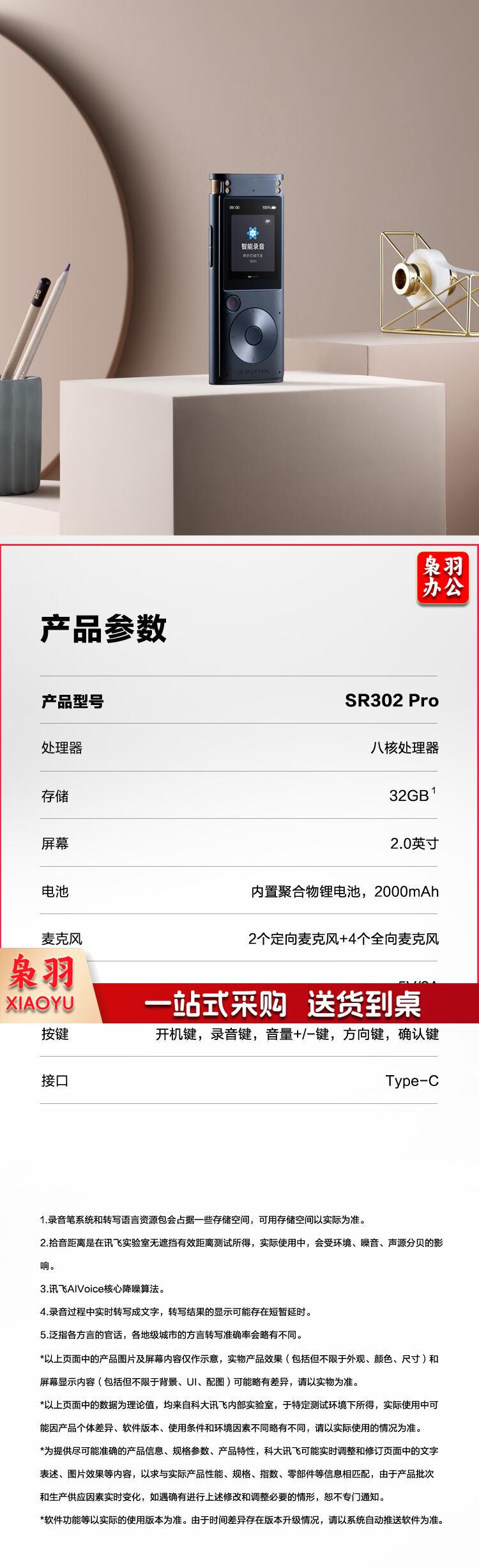 科大讯飞(iFLYTEK)AI智能录音笔SR302 Pro 星空灰