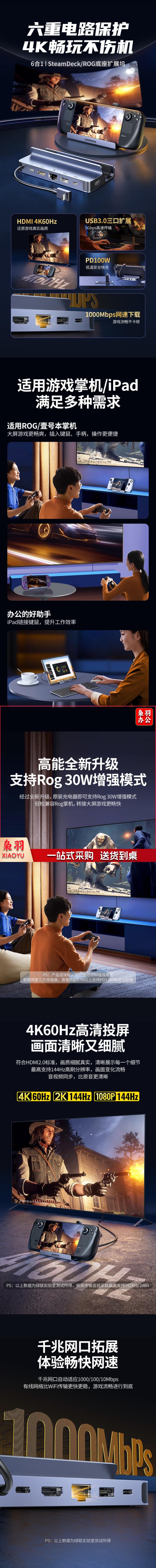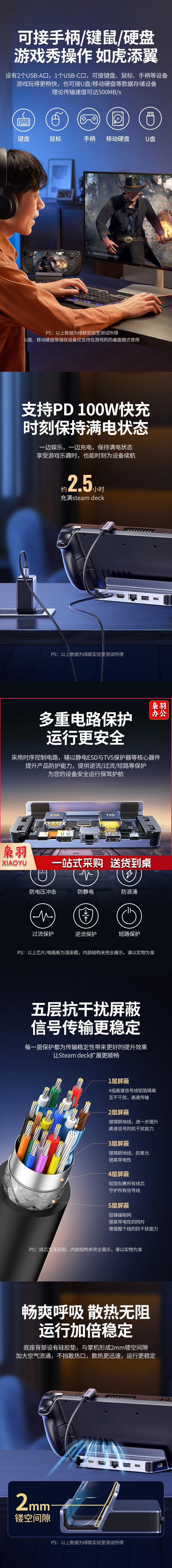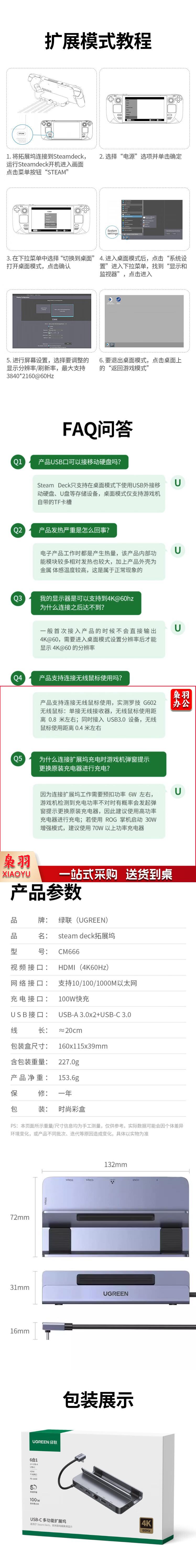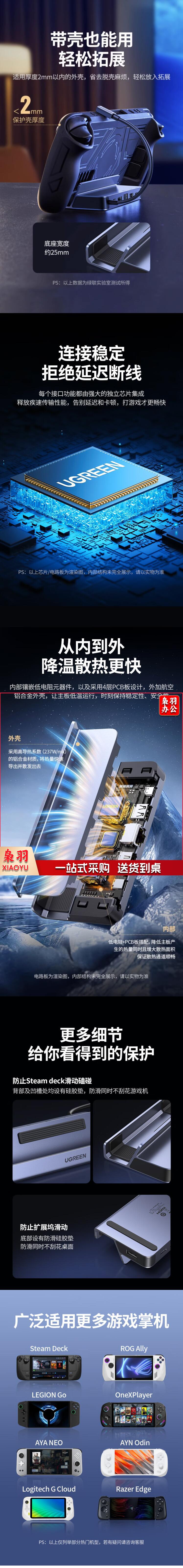 绿联(UGREEN)SteamDeck/ROG桌面支架扩展坞Type-C拓展坞掌机游戏底座HDMI转换器4K60Hz投屏千兆网口适用苹果15388/CM666