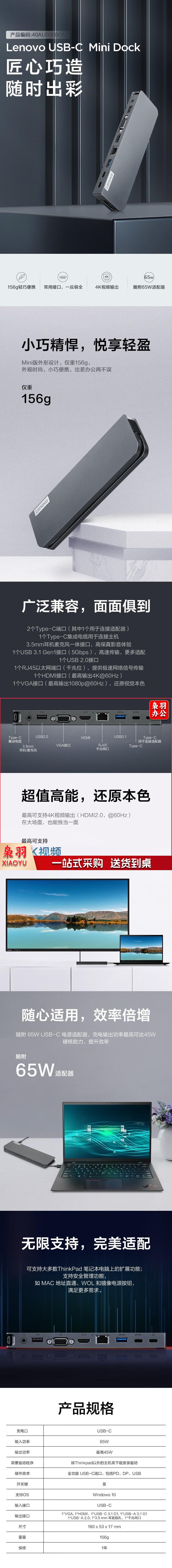 联想(Lenovo)ThinkPad 移动便携扩展坞 USB-C接口一转七迷你扩展坞 40AU0065CN