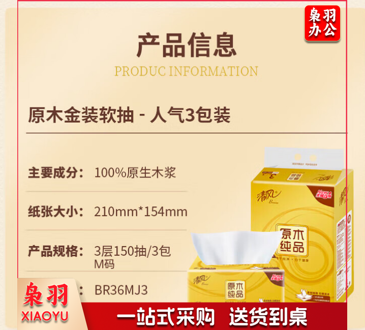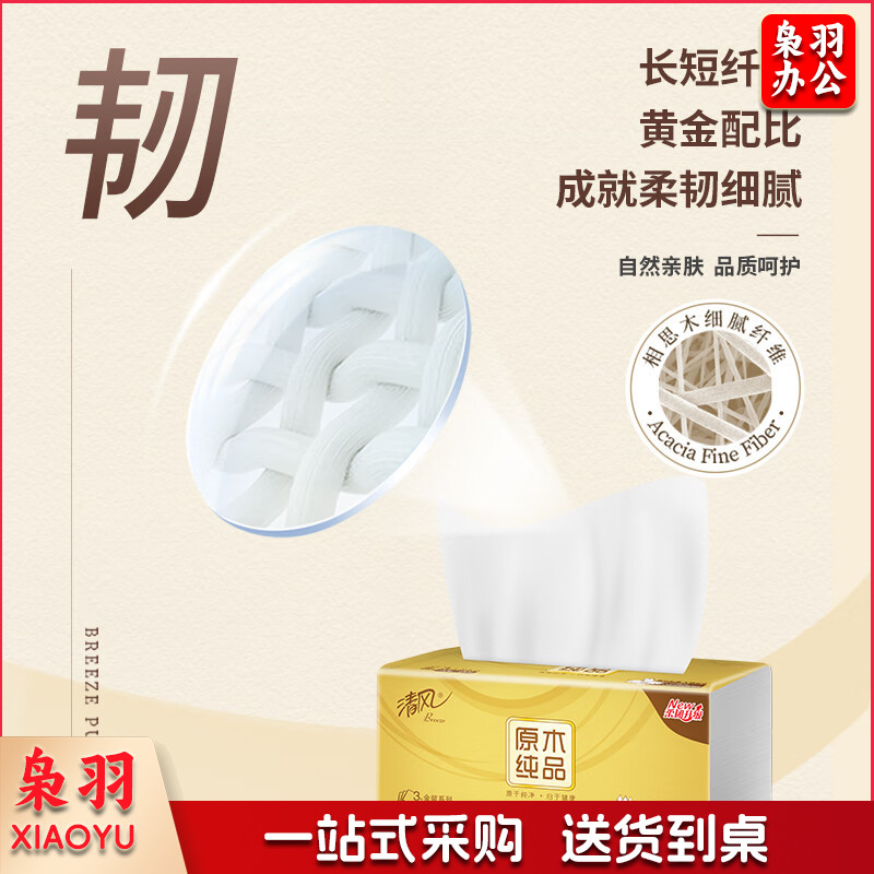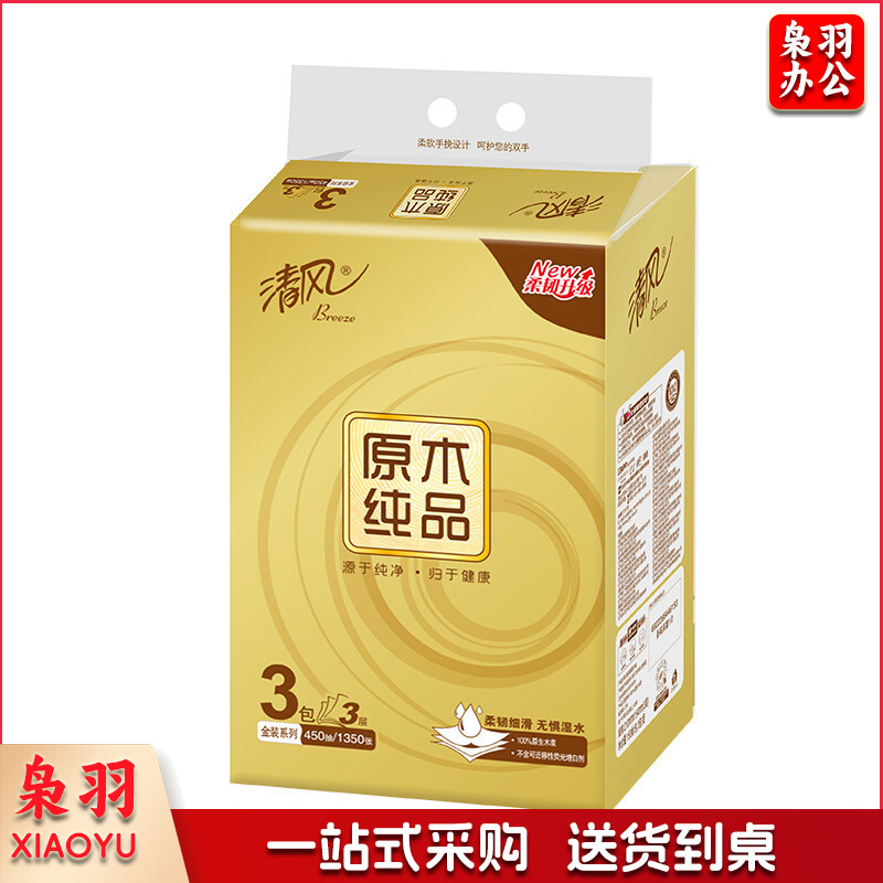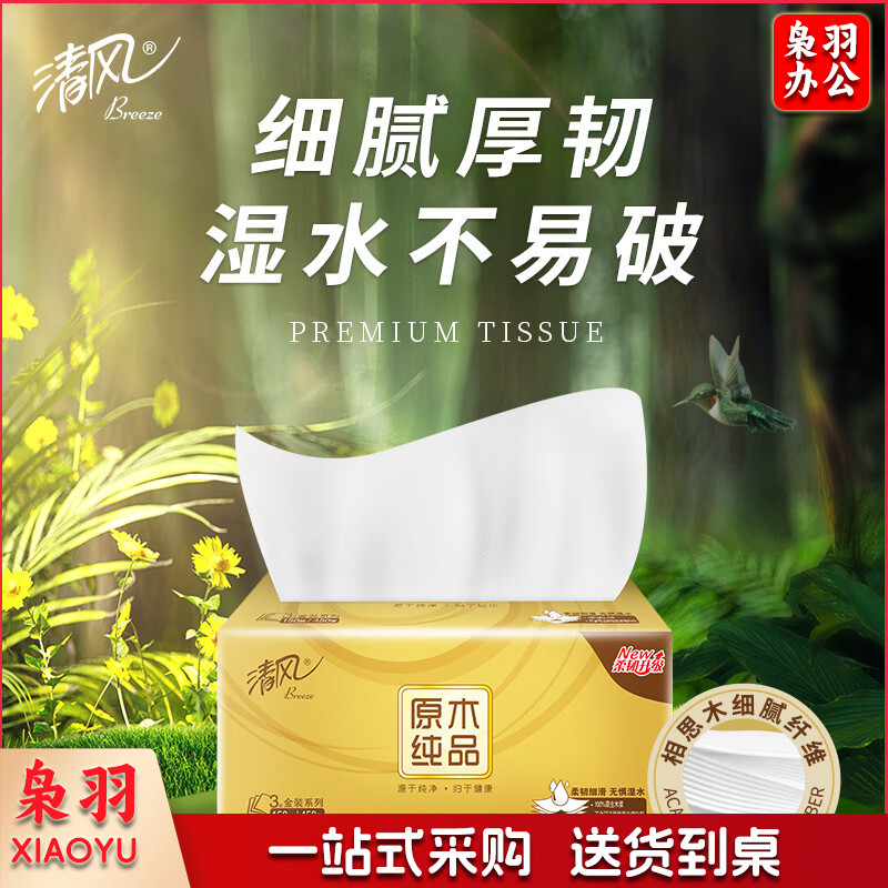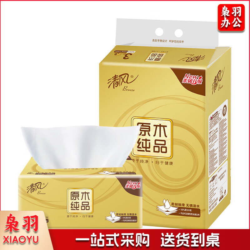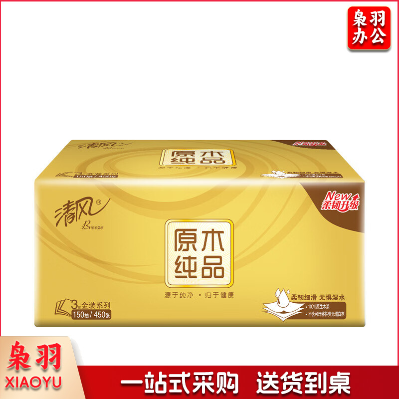 清风抽纸 原木金装 3层150抽*3包M码 亲肤无刺激 卫生纸巾 餐巾纸