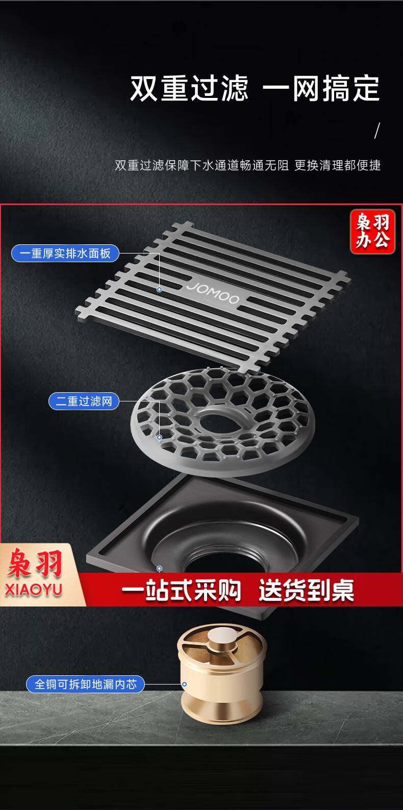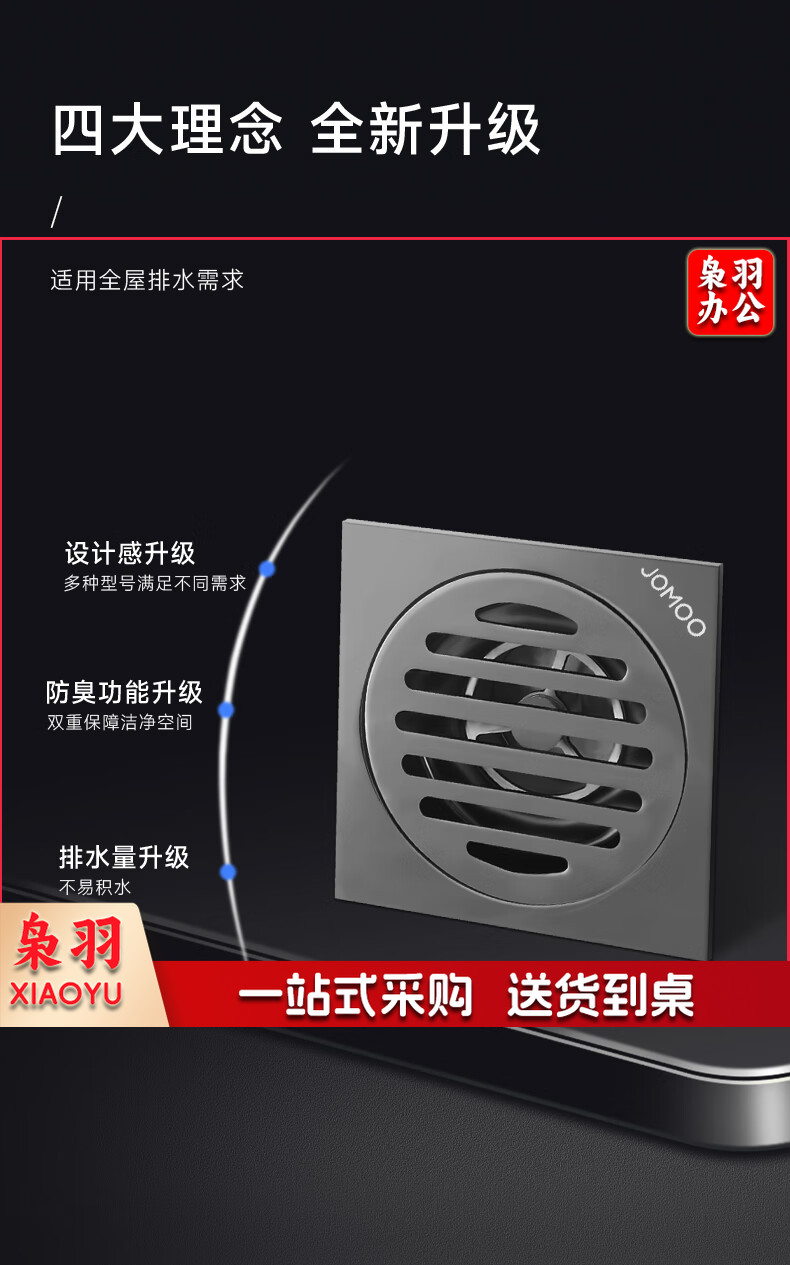JOMOO九牧九牧枪灰地漏加厚家用不锈钢浴室卫生间洗衣机通用防臭防虫防返水 枪灰竹排单用地漏