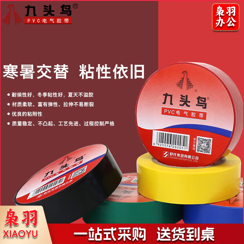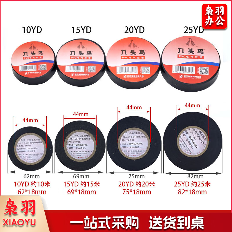 九头鸟九头鸟电工电胶布pvc绝缘胶带电工防水舒氏电胶带大卷 15yd【10卷】