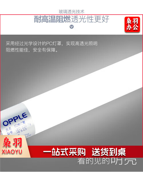 欧普(OPPLE)T8T5LED玻璃灯管0.6米9w0.9米12w1.2米16W节能长条日光灯 0.6米16w灯管一支装