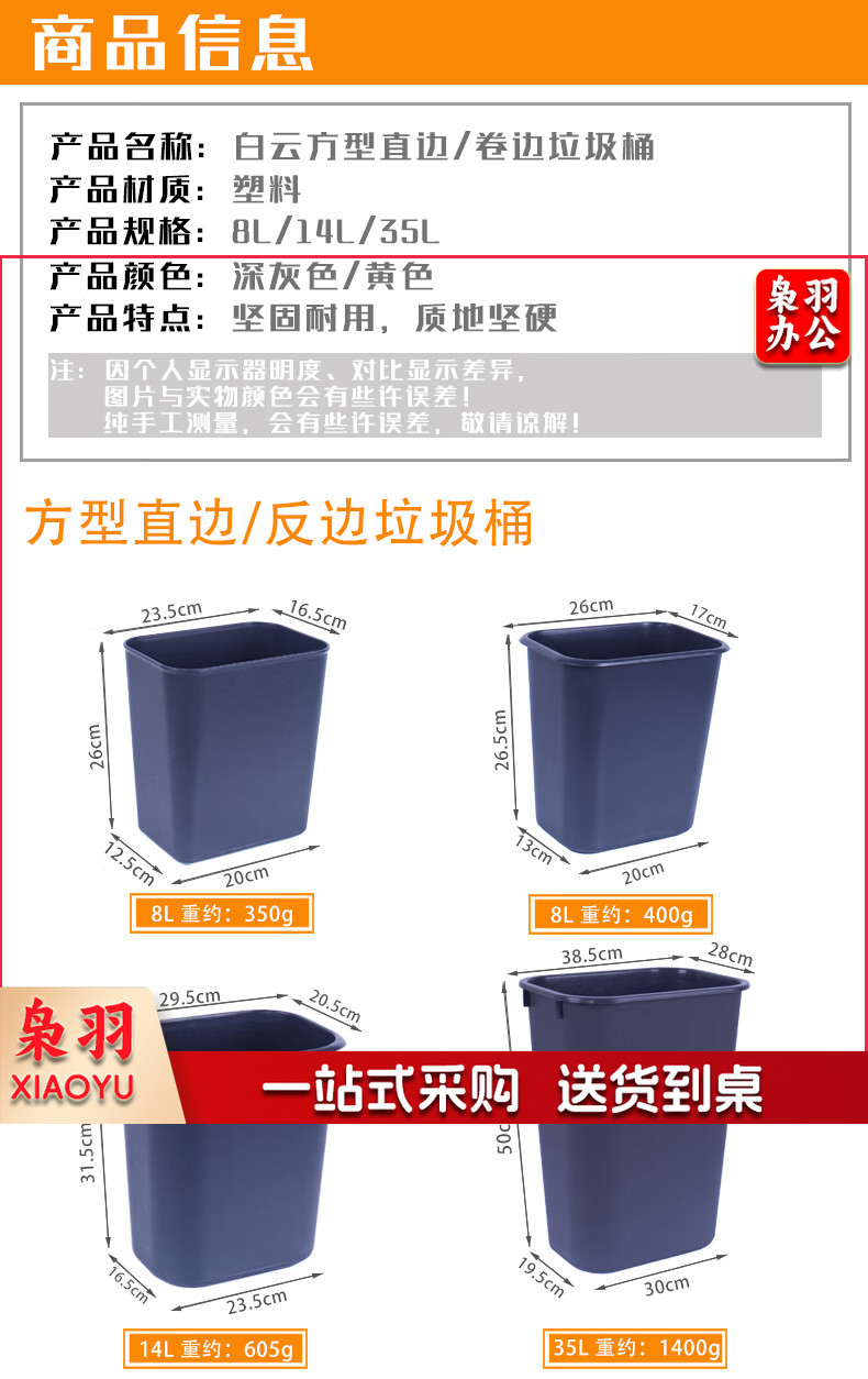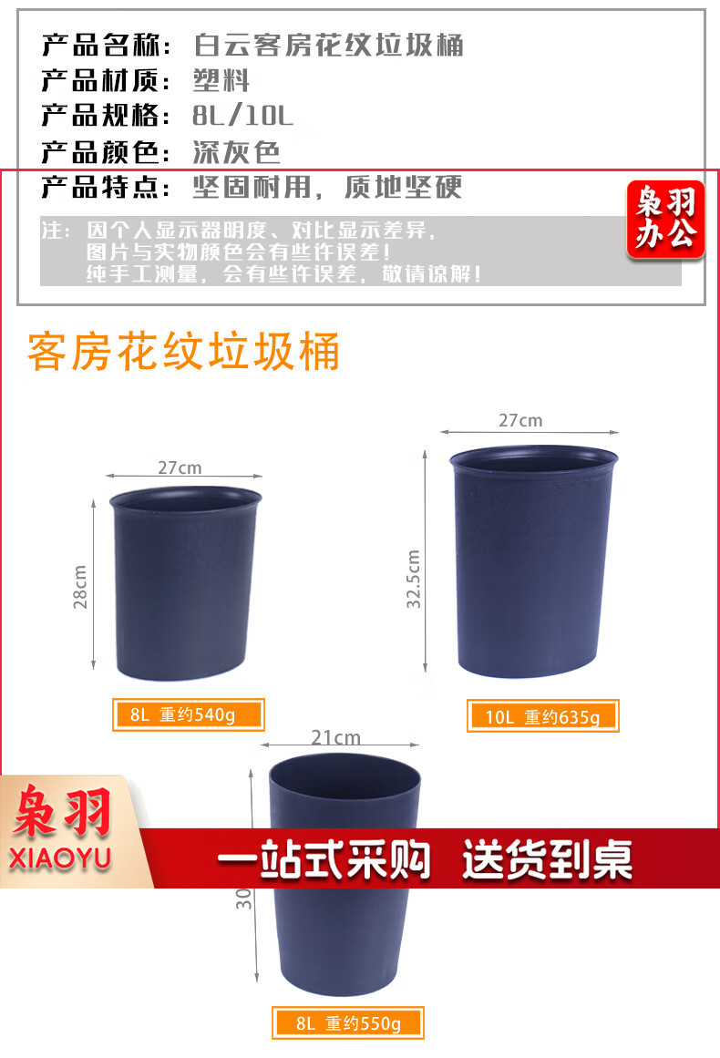 白云清洁(baiyun cleaning)AF07021 酒店客房垃圾桶 办公室商用纸篓垃圾篓 14L 灰色反边