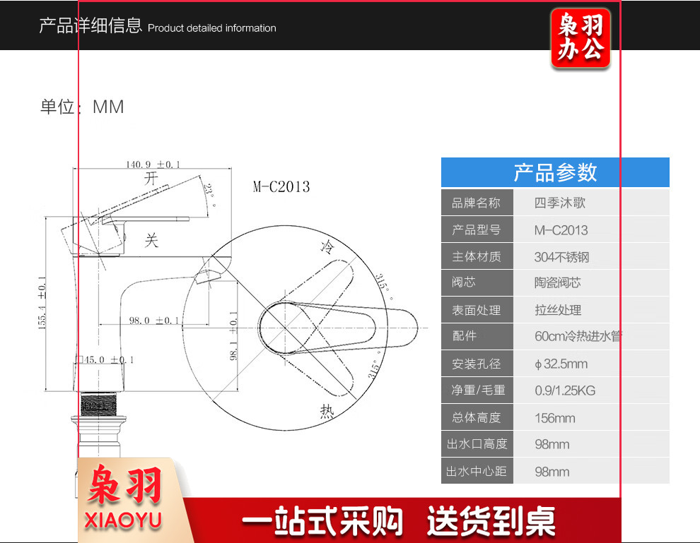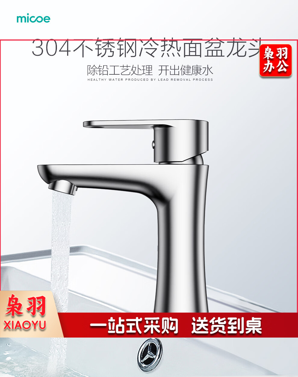 四季沐歌面盆水龙头304不锈钢冷热水龙头浴室卫生间洗脸盆台盆通用