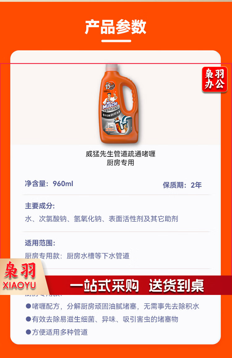 威猛先生(Mr Muscle)管道速效疏通啫喱 强力瓦解厨房堵塞 960ml