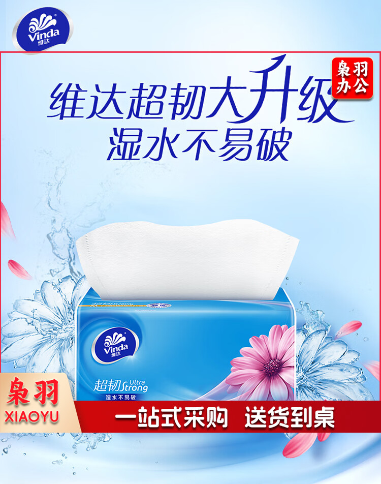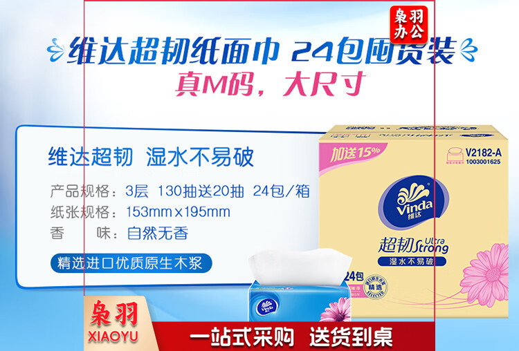 维达(Vinda)抽纸 超韧3层150抽*24包M码 湿水不易破 纸巾卫生纸 餐巾纸 整箱