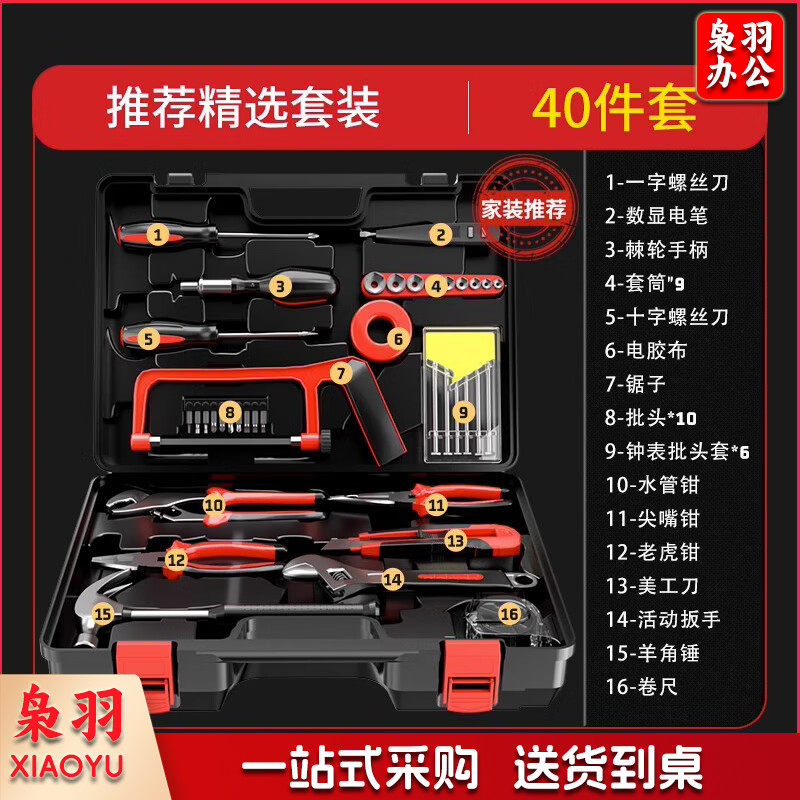 德力西(DELIXI)40件套工具箱五金工具箱万能家用多功能车载木工电工家庭专用维修套装