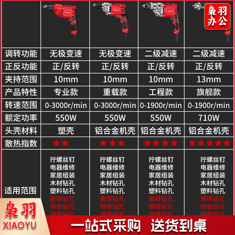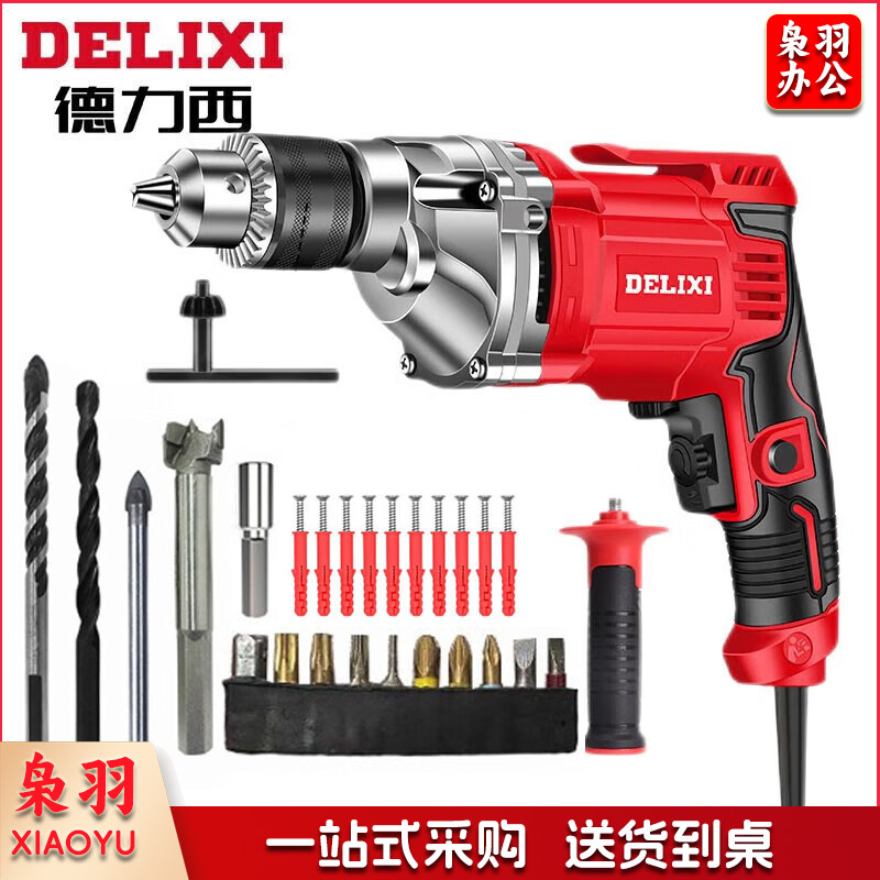 德力西手电钻交流电220v电动螺丝刀起子机多功能家用电钻打孔电动工具 旗舰款标配套装710w