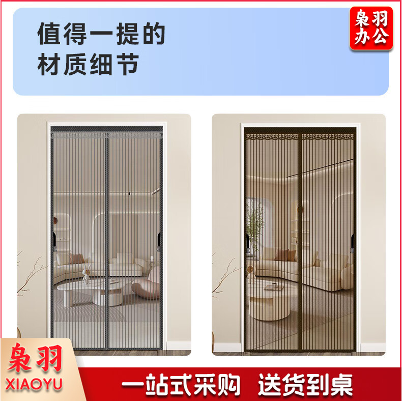 全磁条防蚊门帘磁性自吸磁吸纱窗魔术贴免打孔纱门夏季防蝇沙门网 金刚网咖啡色 条纹款【三边加宽】76*198