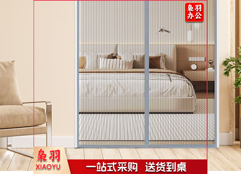 全磁条防蚊门帘磁性自吸磁吸纱窗魔术贴免打孔纱门夏季防蝇沙门网 金刚网咖啡色 条纹款【三边加宽】 125*195