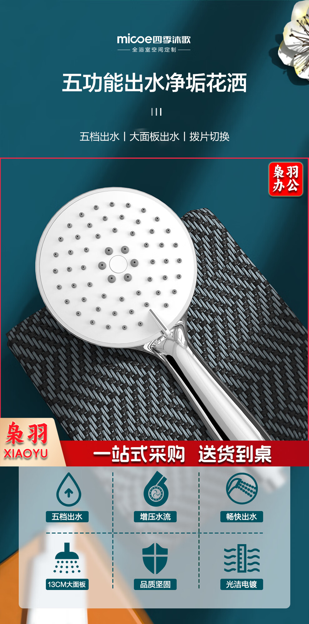 四季沐歌(MICOE)电镀增压淋浴花洒喷头套装 淋浴喷头淋浴头花洒套装手持花洒