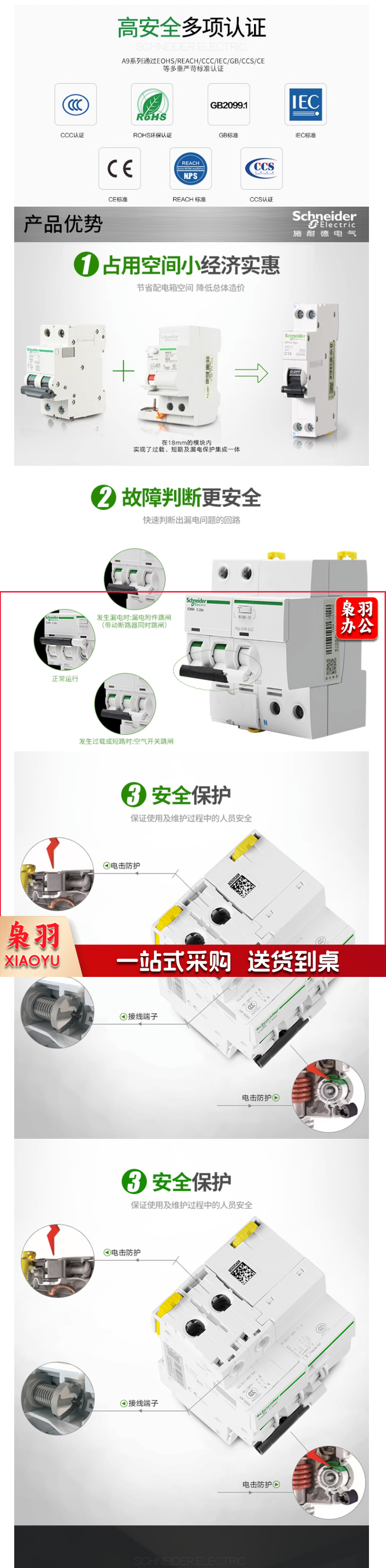 施耐德空气开关A9断路器IC65N空开2P/6A动力D系列