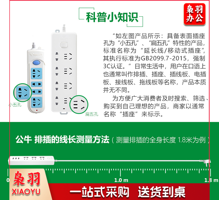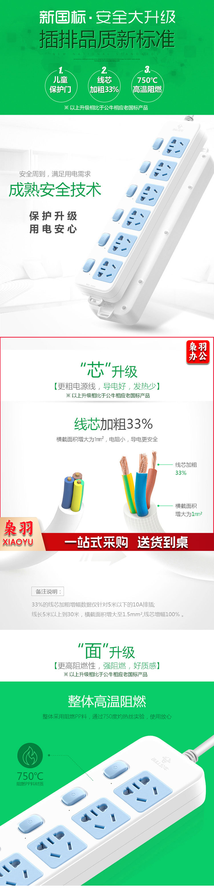 公牛(BULL) GN-317 插座分控插排独立开关多功能接线板家用电插板带线拖线板 6插位 5米