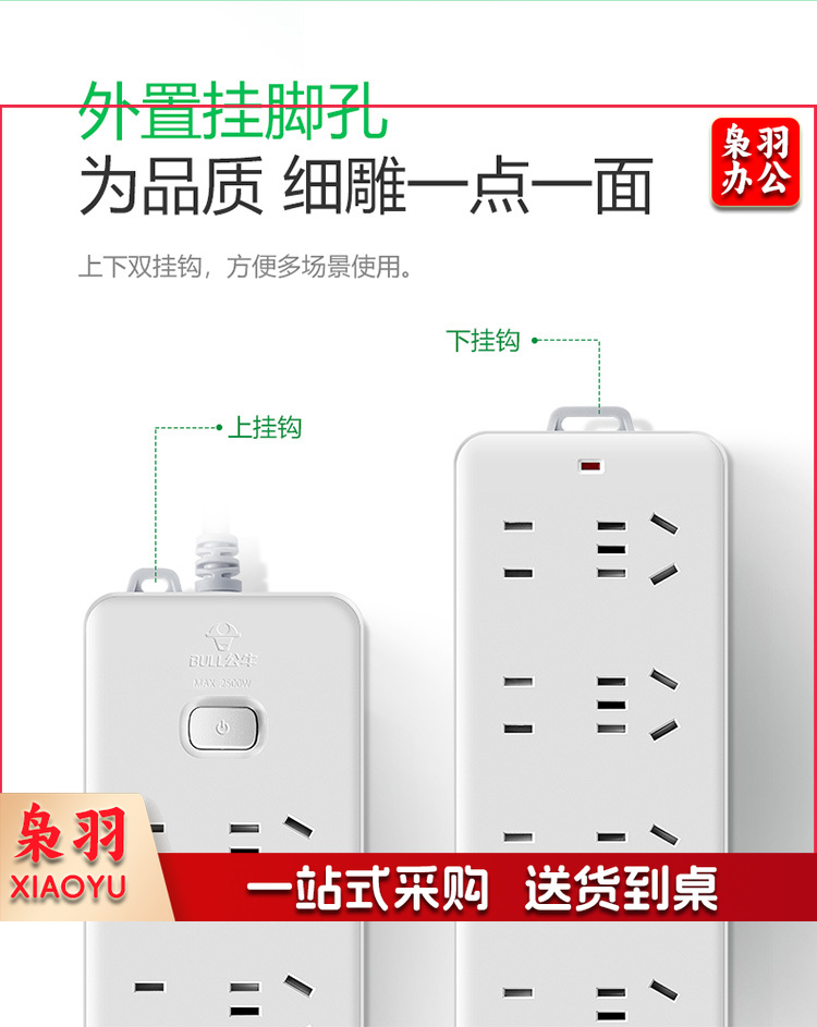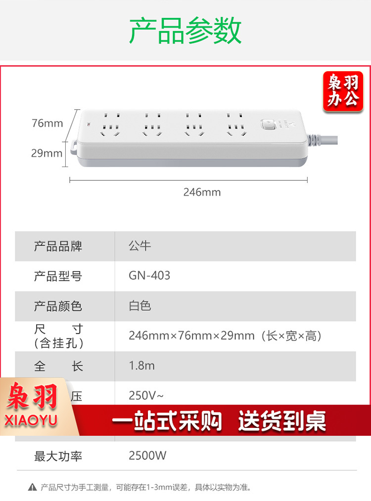 公牛(BULL)新国标插座 插线板/插排/排插/接线板/拖线板 8位总控全长3米 GN-403