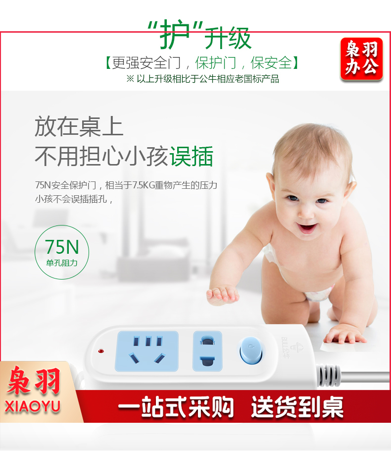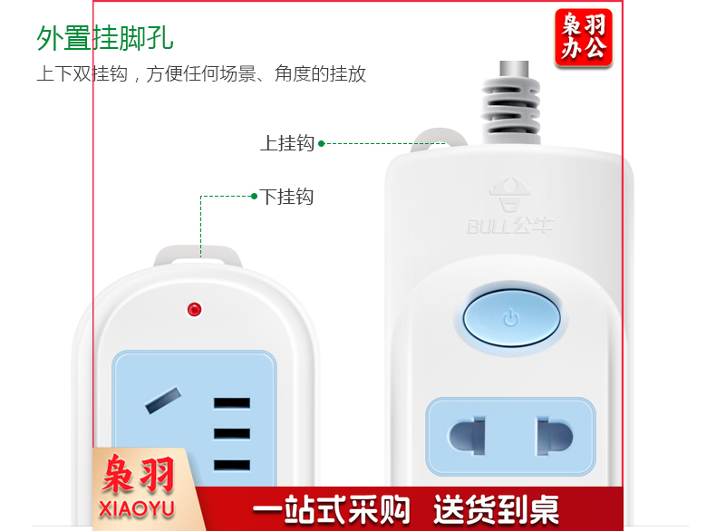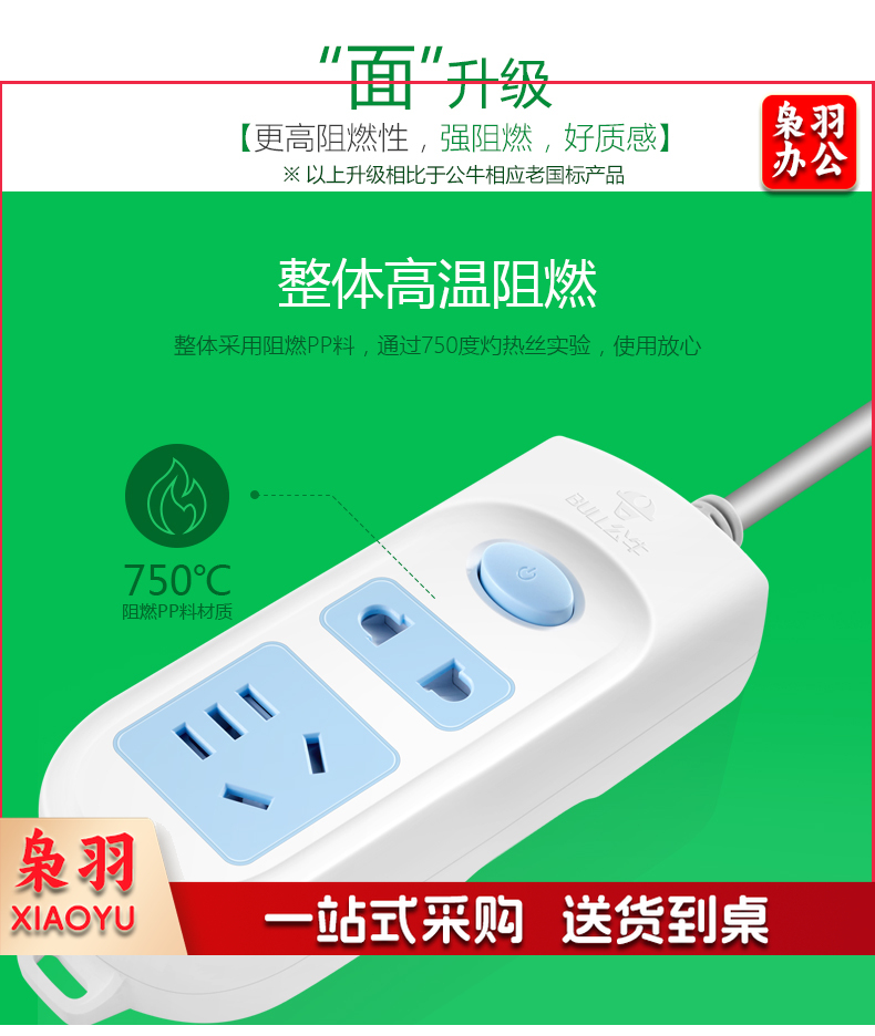 公牛(BULL)新国标插座/插线板/插排/排插/接线板/拖线板 2位总控全长1.8米 GN-612