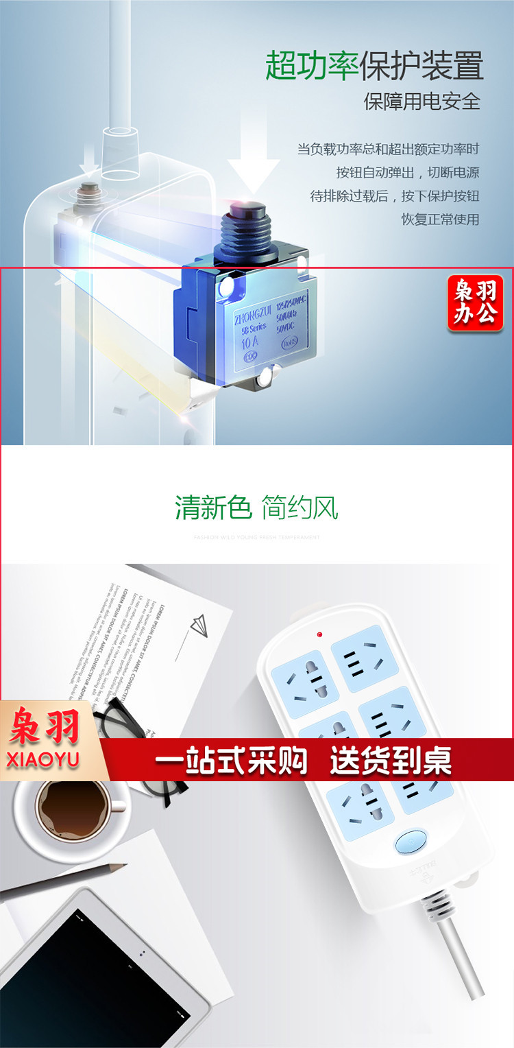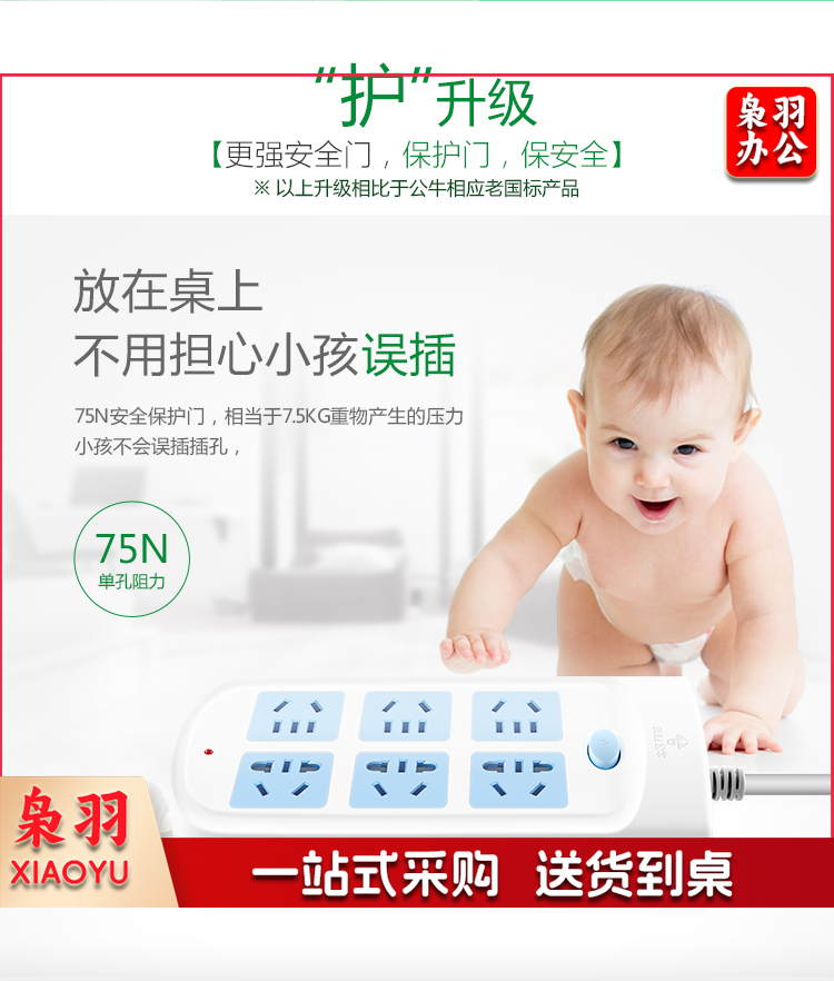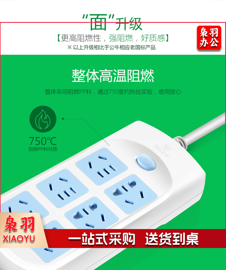 公牛插座 超功率过载保护 电源插座接线板 拖线板插排 总控全长3米GN-603