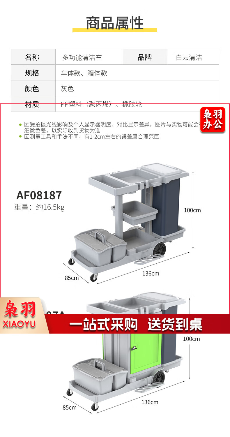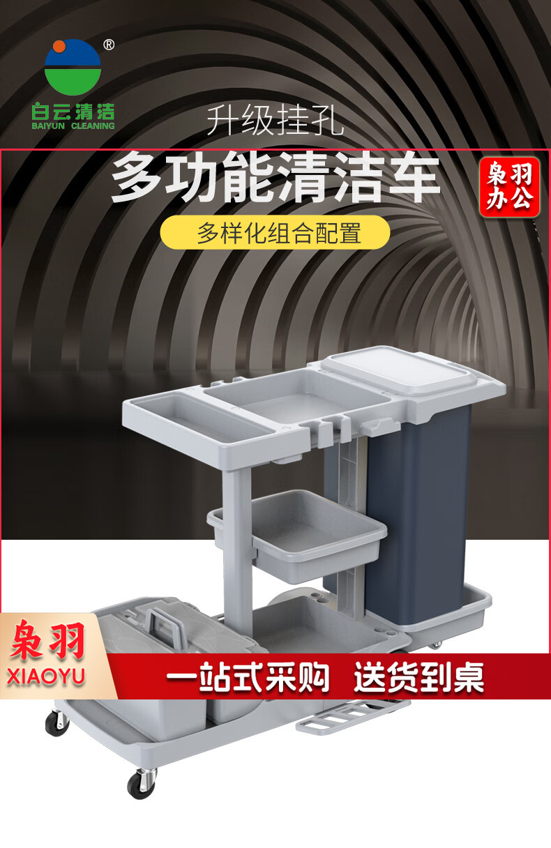 白云清洁 AF08187 酒店客房多功能手推车布草车保洁工作车清洁车服务车 136*85*100CM