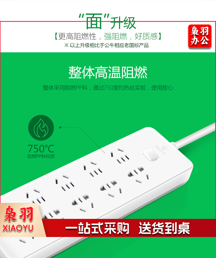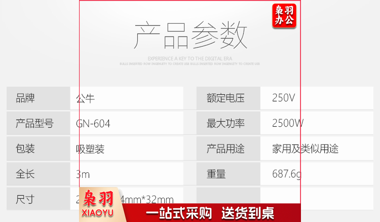 公牛(BULL) 超功率过载保护 新国标/插线板/插排/排插/接线板 GN-604 8位总控全长3米