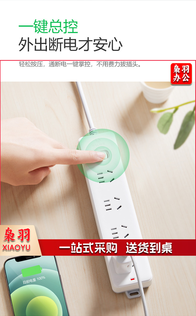 公牛(BULL) 新国标插座/插线板/插排/排插/接线板/拖线板 GN-410 4位总控全长5米